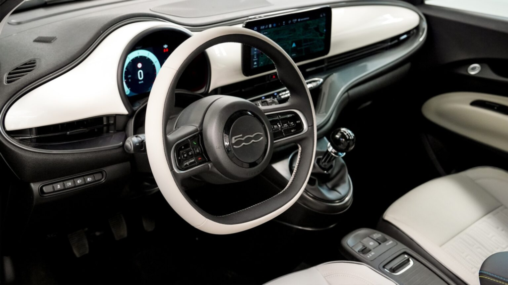 内饰部分则延续电动版的精致感。10.25英寸的Uconnect 5中控系统和7英寸全液晶仪表,兼容无线Apple CarPlay与Android Auto。与纯电车不同的是,500 Hybrid的中央控制台增加了实体手动档把和更大的储物空间,既保留了机械质感,也提升了日常实用性。