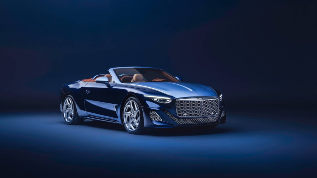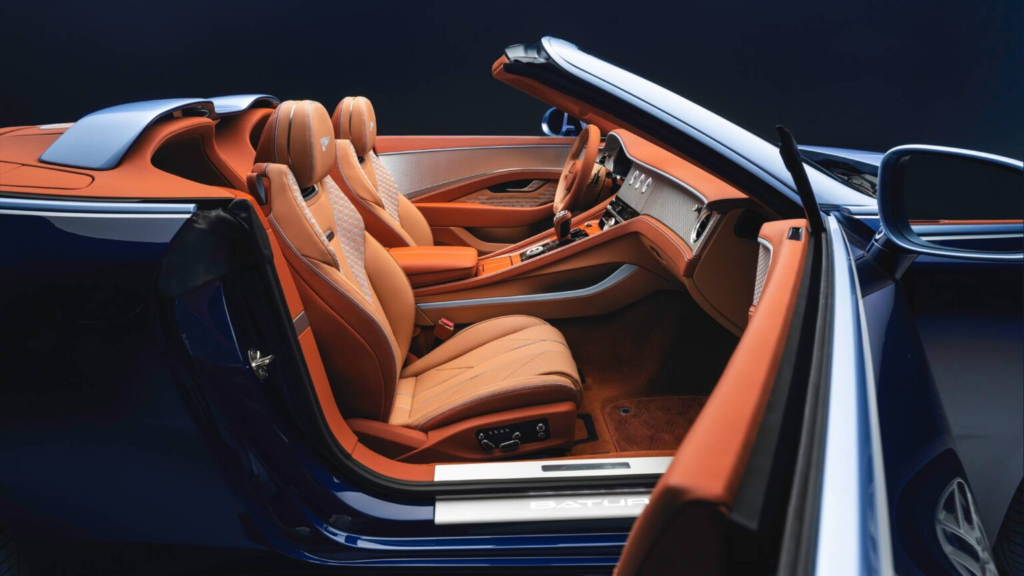 敞篷车最容易被忽略的布顶,在这辆车上同样被视为整体设计的一部分。Batur Convertible #4 的软顶采用与车身呼应的深蓝色,这是宾利首次在敞篷作品中进行如此彻底的颜色统一。无论车顶开启或关闭,车身线条与色彩都能保持完整一致,甚至连敞篷放下后显露的后方结构,也经过特别上色处理,避免破坏整体视觉节奏。