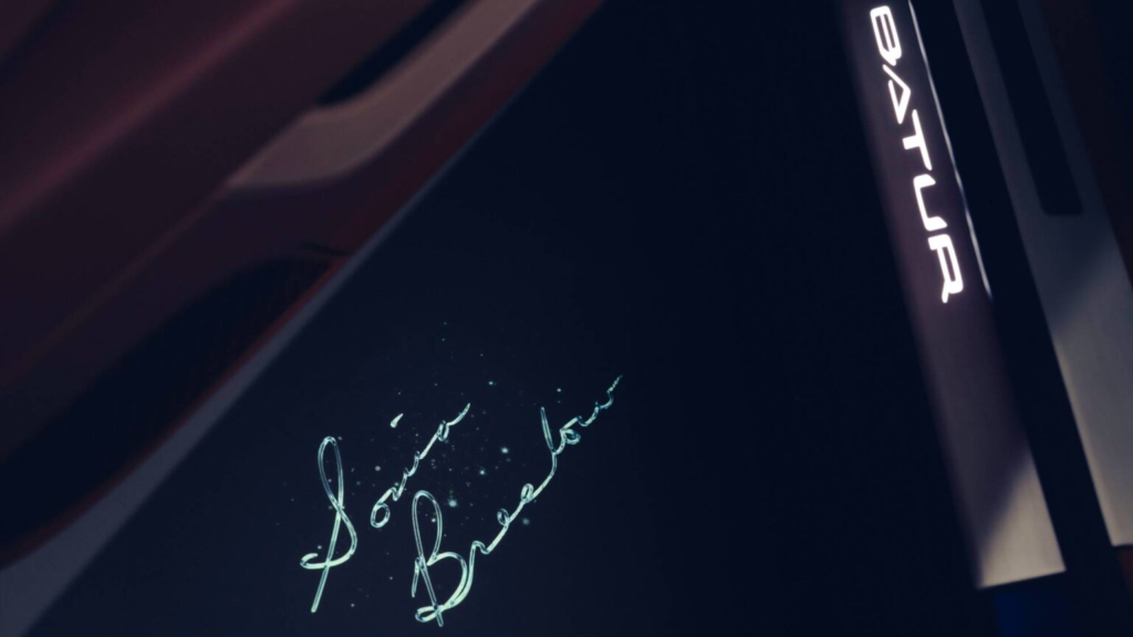 真正让人感受到“只此一辆”的瞬间,发生在车主靠近车辆之时。Batur Convertible #4 首度导入由车主亲自参与设计的迎宾灯动画系统。超过四十万枚微型反射元件,会在车门开启时,将 Sonia Breslow 的亲笔签名投射在地面上。这不是单纯的科技炫技,而是一种极具个人意义的仪式感,让每一次上下车都成为专属体验。