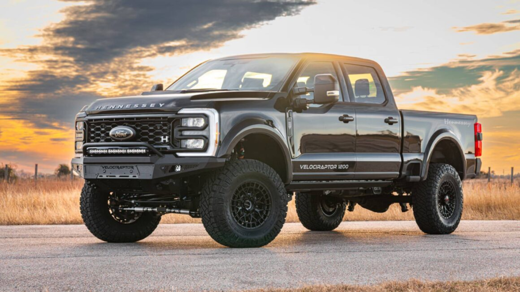 VelociRaptor 1200 F-250 以 Ford F-250 Super Duty Lariat 版本作为基础。原厂 F-250 本就以强悍耐用著称,是美式重型皮卡的代表之一。Hennessey 在这次改造中,并没有走常见的“疯狂堆马力”路线,而是保留了福特原本就极具代表性的动力核心,强调一种更符合重型皮卡定位的整体性能平衡。