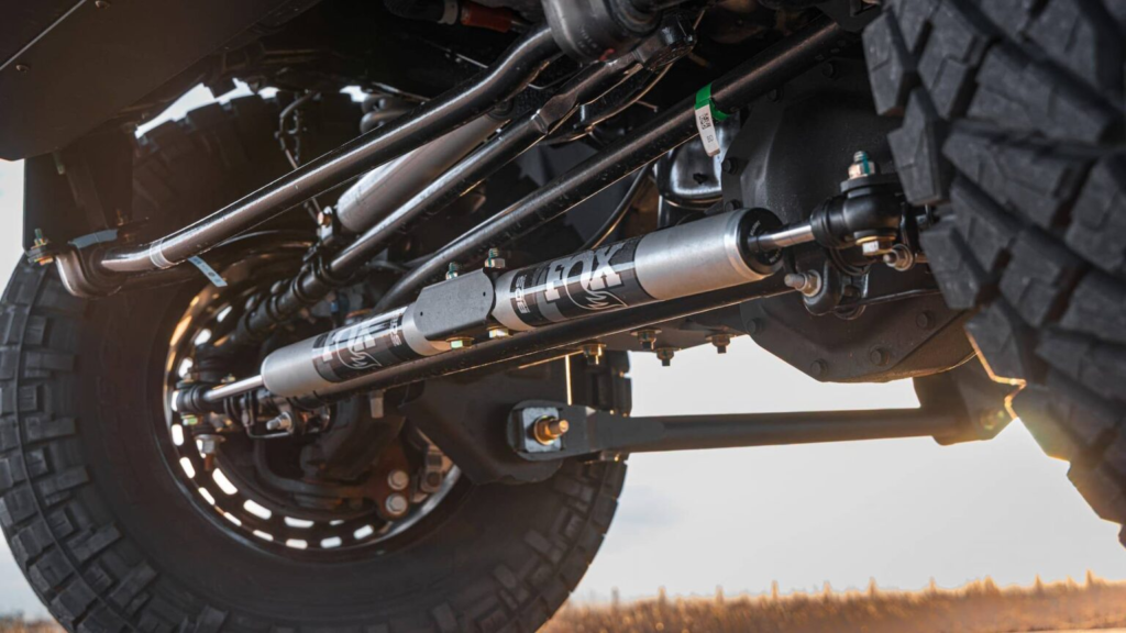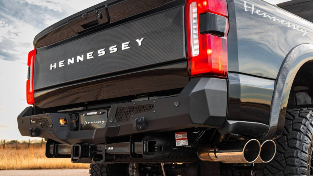 真正让这辆车脱胎换骨的,是 Hennessey 在底盘与悬挂上的全面升级。车身被大幅抬升,离地间隙显著增加,配合强化的悬挂系统与可调避震,让它在碎石、沙地或泥泞路面上都具备极高的通过能力。这种设定不仅让车辆在功能上更强悍,也让视觉效果变得更加震撼——站在它面前,很难不被那种“无所不能”的气势所压倒。