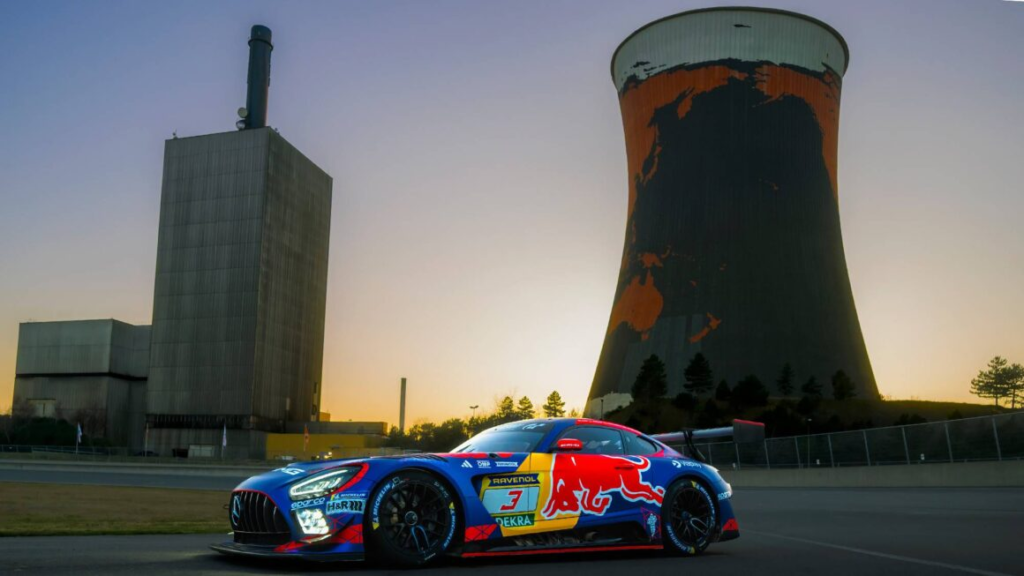 在新车亮相方面,Red Bull团队一如既往地采用极具创意的方式进行发布。他们邀请德国极限运动员Max Manow从一座发电厂冷却塔顶部进行BASE跳伞,这座冷却塔高度达到131米。当运动员从高空跃下并降落在地面时,等待他的正是这辆全新涂装的Mercedes-AMG GT3赛车。这种结合极限运动与赛车文化的发布方式,也再次展现了Red Bull品牌一贯大胆而富有创意的风格。