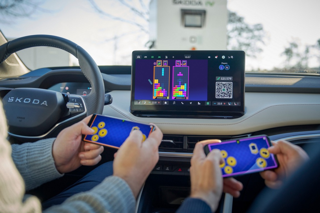 在电动车时代,驾驶者最常面对的新场景之一,就是在充电站等待电量补给的那段时间。过去这段时间往往只能滑手机或下车走动,如今汽车品牌开始尝试让车内空间变得更加有趣。捷克汽车制造商 Škoda 最近宣布,将经典游戏《俄罗斯方块》引入旗下电动车型 Elroq 与 Enyaq 的车载系统,让车辆在静止时摇身一变成为娱乐中心。