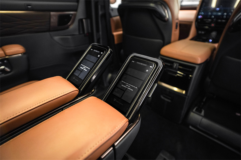 内饰采用高级 Nappa 真皮,搭配柔软触感材质与 64 色可调车顶氛围灯,营造出宁静而优雅的车内氛围。旗舰专属 “日落棕” 内饰配色,为整体设计增添温暖而现代的格调。15 扬声器 JBL 高级音响系统与 14 英寸后排吸顶显示屏相辅相成,再加上可通过手机应用操作的远程引擎启动与车联网系统,带来无缝衔接的智能体验。
