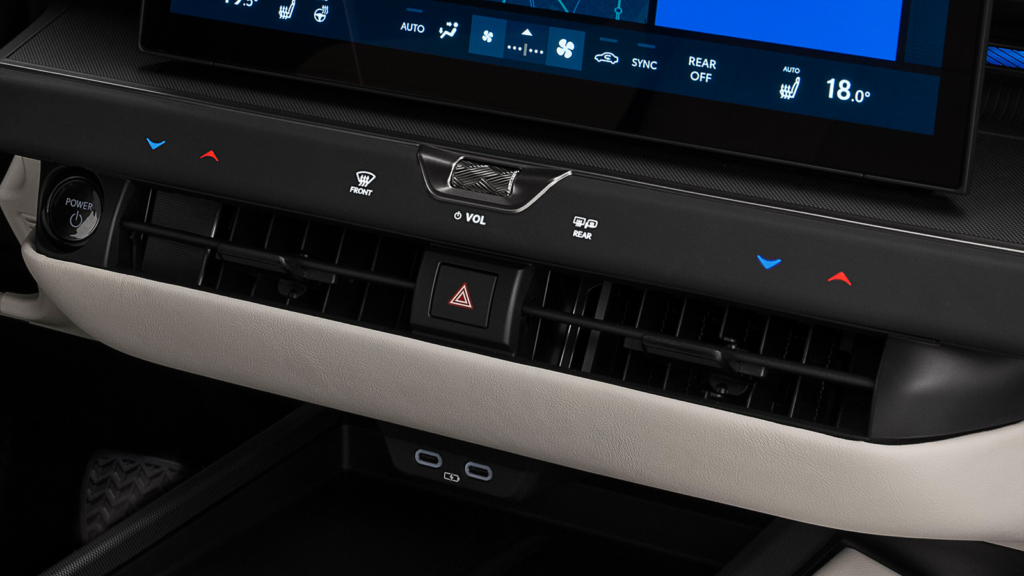 内装方面,全新 ES 依旧维持 Lexus 一贯的豪华感,但设计更趋简洁现代。仪表采用 12.3 吋全数位显示,中控则配备 14 吋触控屏,同时整合空调控制功能,使整体界面更直观也更符合电动车时代的操作习惯。内装材质依旧强调质感,皮革包覆、木纹装饰与镀铬细节皆提升了整体的豪华氛围,同时座舱静肃性也比上代更进一步优化。