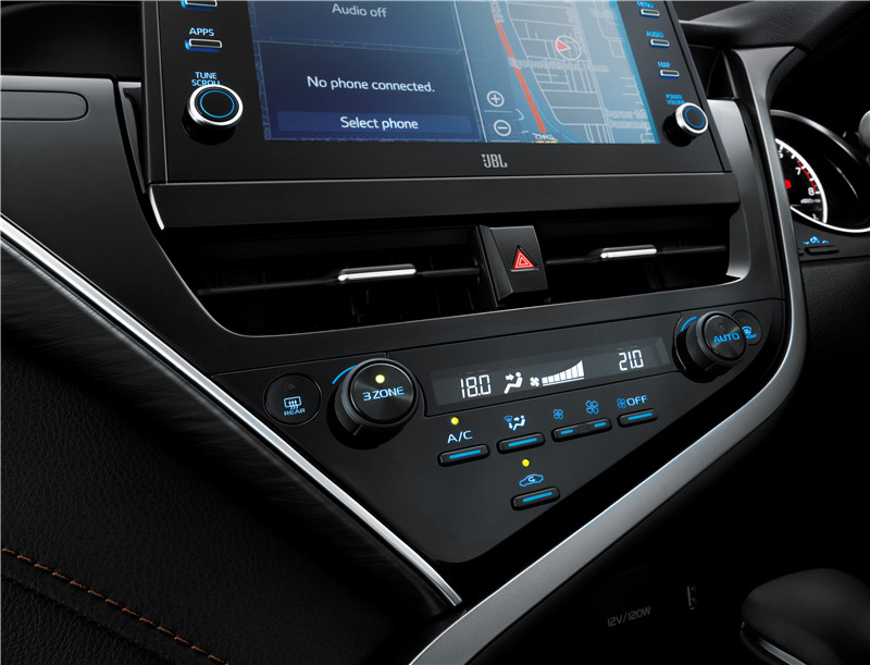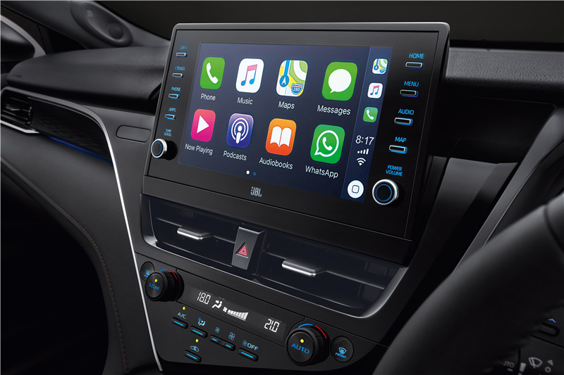 借助配备 Apple CarPlay™ 和 Android Auto™ Ready 功能的 9 英寸显示屏音频,新丰田 Camry 的每一次驾驶体验都可以变得既有趣又豪华,让驾驶员和乘客能够通过 9 个 JBL 扬声器获得最佳音乐和娱乐享受,包括低音炮带来极致聆听乐趣。此外,后排乘客可以轻松地倾斜座椅、调节后三区空调系统和遮阳帘,以及通过中央扶手内控制面板上的按钮方便地轻触按钮无缝控制音频系统。这是 Camry 在该细分市场中的首个创新。