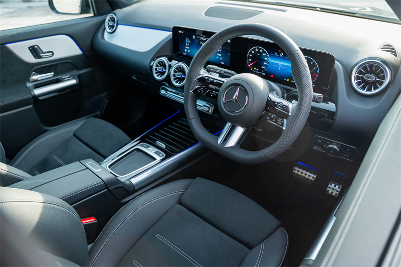 其中,GLA 250 4MATIC Nightfall Edition 进一步配备 MULTIBEAM LED 智能多光束头灯,具备自适应远光灯辅助与 ULTRA RANGE 远光功能,在复杂路况下提供更精准照明,提升夜间驾驶信心。