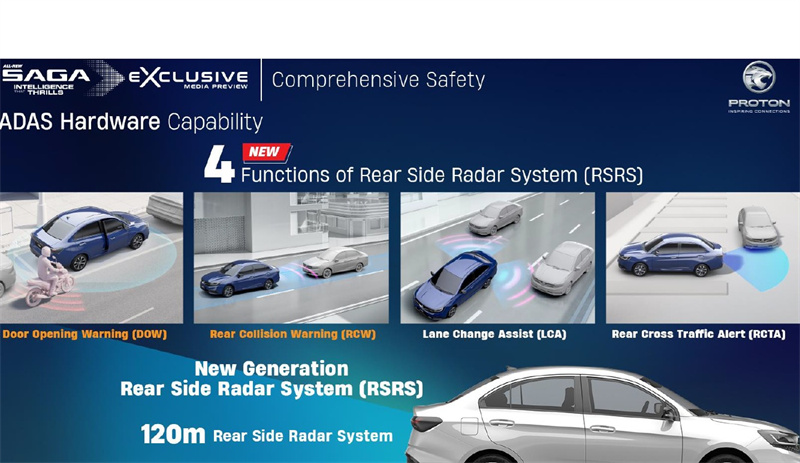 全新Saga搭载的新一代 Rear Side Radar System(RSRS),是这次技术升级的核心亮点。其雷达探测范围可达 120米,并具备四项全新功能: