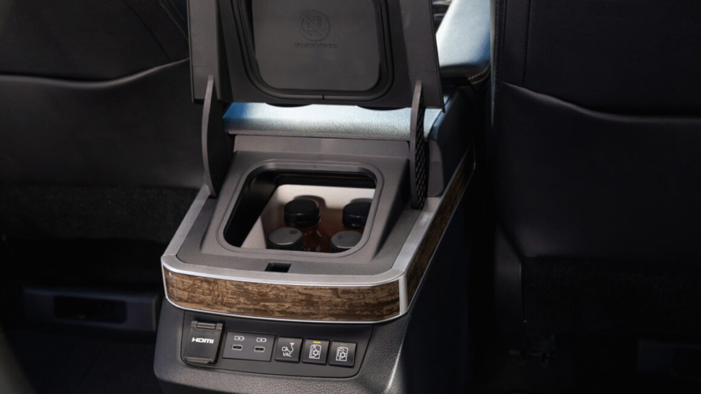 最令人惊喜的是,Toyota 还在顶级的 Platinum 版本中加入了极具人性化的配置——车载吸尘器与小型冰箱。这两项配备看似细节,却大大提升了家庭使用的便利性。无论是孩子吃零食留下的碎屑,还是周末野餐需要保存饮料与水果,都能轻松应对。这种以家庭需求为出发点的贴心设计,正是 Sienna 能长期稳坐市场领导地位的原因之一。