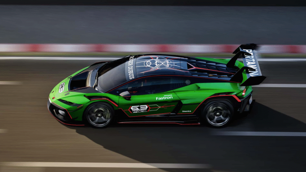 这款赛车专为Lamborghini Super Trofeo单一品牌赛事打造,延续了品牌在赛车领域的辉煌传统。车身以碳纤维与铝合金为核心结构打造,整车干重仅约 1,300公斤,比公路版Temerario轻了接近 390公斤。这种极致轻量化不仅提升了加速反应,更让整车在弯道中展现出惊人的灵活性与精准操控。