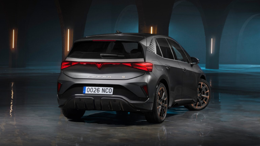 从整体设计来看,新款Born仍然保留原有的五门掀背车轮廓,不过细节上出现不少变化。设计团队为车辆导入Cupra最新家族设计语言,使其视觉风格与品牌其他车型更加统一,例如Cupra Formentor以及Cupra Tavascan等。车头部分最明显的变化来自全新灯组设计,头灯采用品牌标志性的三角形光源结构,并首次加入Matrix LED矩阵式头灯技术,不仅提升夜间照明能力,也让整辆车更具辨识度。