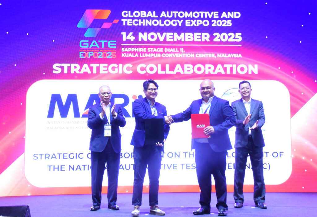 吉隆坡,2025 年 11 月 21 日讯 —— 在 2025 全球汽车与技术博览会(GATE 2025)上,宝腾与马来西亚汽车、机器人与物联网研究院(MARii)正式交换战略合作文件,标志着双方将展开为期五年的深度合作计划,进一步推动马来西亚汽车工业技术升级。此次合作涵盖国家汽车测试中心(NATC)的扩建与运营、共享测试设施,以及为宝腾 200 名研发工程师与技术人员提供专业培训,旨在提升本地汽车产业的人才实力与测试能力。