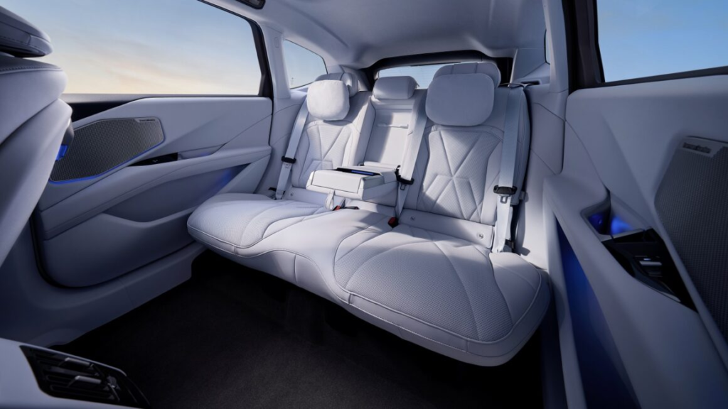 在尺寸层面,i3与iX3长轴版的轴距均突破3米,这一设定显然是针对中国消费者偏好“后排优先”的使用场景而来。后座不仅腿部空间更加宽裕,坐垫长度与厚度也进行了优化,并引入接近旗舰车型的头枕设计,整体乘坐体验已经接近豪华行政级轿车的标准。这种升级对于商务用途或长途出行来说,具有非常直接的吸引力。