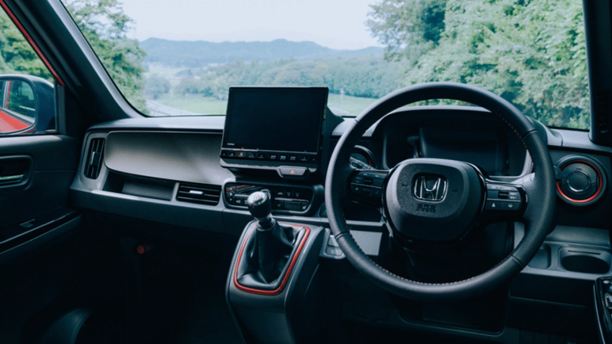 至于喜欢更热血驾驶的车主,RS 手排版本依然是最值得关注的一角。在自动变速盛行的时代,这辆轻型车还能保留六速手排,难能可贵。它采用更具运动意象的红色缝线、RS 字样点缀、以及带有碳纤纹路的饰板,再搭配 15 吋白色铝圈与更紧致的悬吊,让整辆车外型与驾驶氛围都更具竞技味道。N-One 虽然车身娇小,但在日本国内常被视为“最能代表 Honda 灵魂”的轻车之一——尤其是手排版本所保留的机械连结感,使其不仅是通勤工具,也是一种驾驶乐趣的载体。