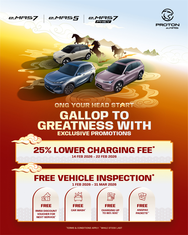 在售后方面,Proton e.MAS 亦于 2026 年第一季度推出节庆售后关怀计划,覆盖全国 36 家授权 Proton e.MAS 3S 中心。相关措施包括免费车辆检查、下次保养优惠、洗车服务,以及充电支援等,确保车主在用车初期即可感受到完整的品牌支持。