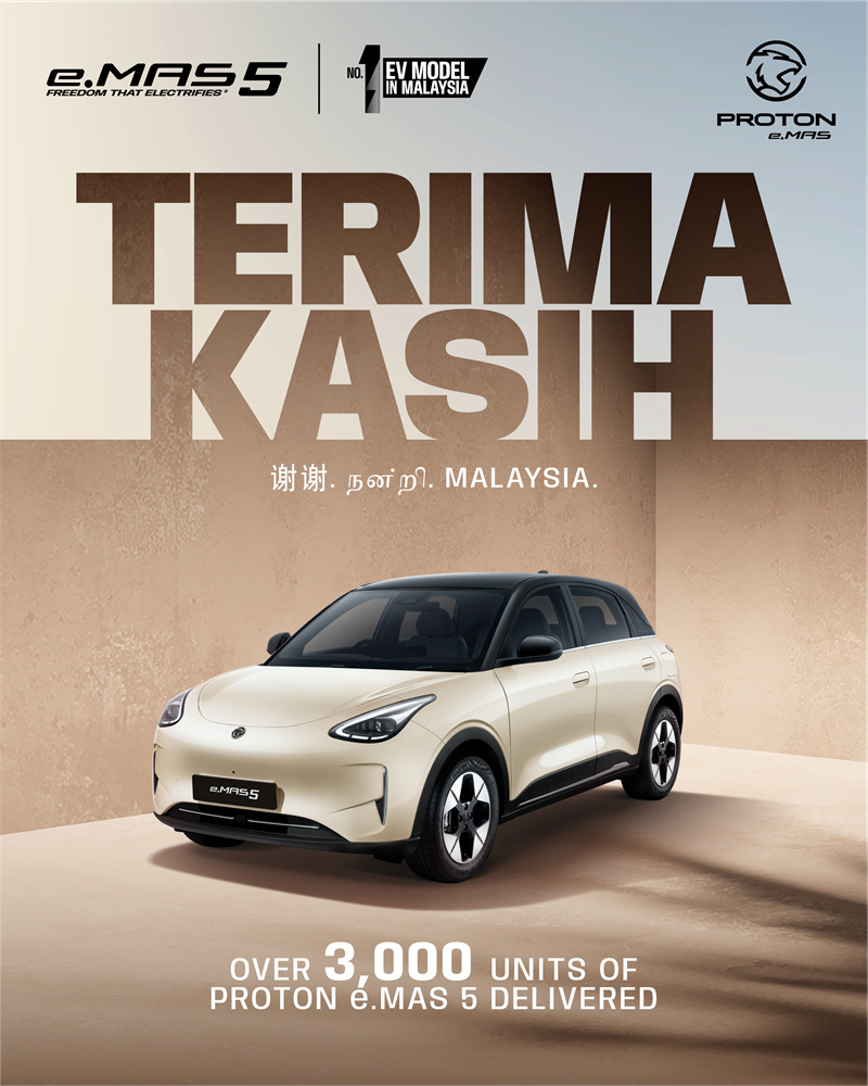 这一突破性成绩,也让 Proton e.MAS 成功跃升为 马来西亚第一电动车品牌,显示公众对电动出行的信心正快速提升。
