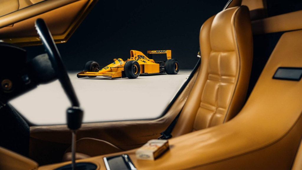 这台 Countach 自交付以来长期由单一车主珍藏,并在近年接受全面翻新。修复过程并非一味追求现代化,而是尽可能回到当年出厂状态,从漆面色调到机械设定都高度还原。更有意思的是,为了呼应那辆 F1 赛车的历史背景,这台 Countach 在不破坏原始结构的前提下,加入了可逆式的赛车风格涂装设计,让两辆车在视觉上形成跨越赛道与公路的时代对话。以当前市场行情来看,这类顶级 Countach 的估值同样已逼近 RM1,200 万 水平。