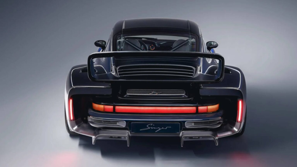 外观是 Sorcerer 最直观、也最具冲击力的部分。整车大量使用碳纤维打造,宽体轮拱、深前扰流与巨大尾翼让人一眼就能感受到它浓厚的赛道基因。Singer 并没有刻意追求浮夸,而是用比例与细节营造力量感。车身涂装采用名为 Fantasia Blue 的渐层蓝色,从车头到车尾颜色逐渐加深,使宽体设计在光影变化下显得更加立体,也让这台性能猛兽多了一分优雅气质。
