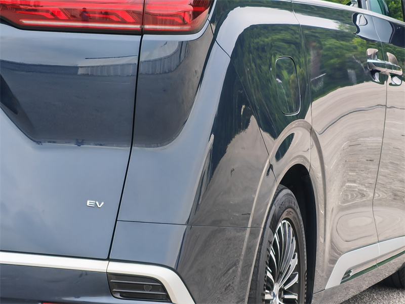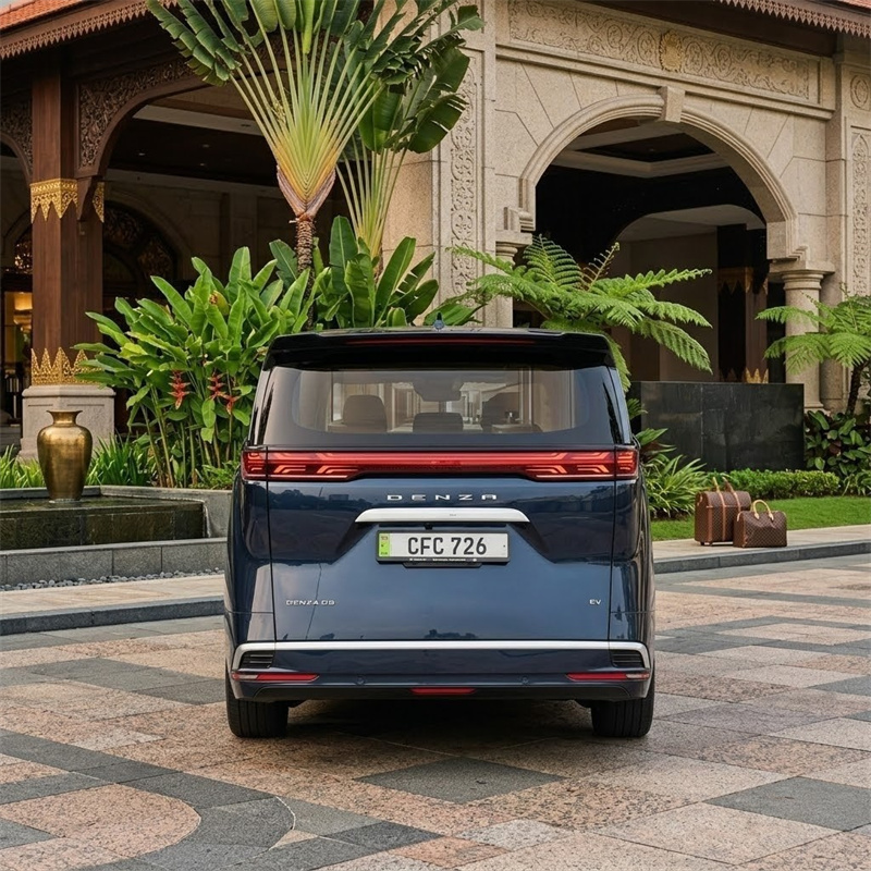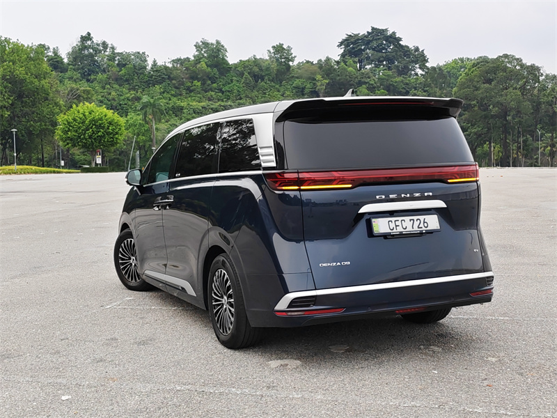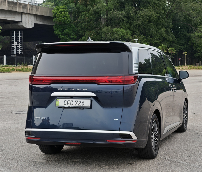 当你把视线移到车侧,就会发现这台车真正的气场来自比例。长轴距所带来的视觉延伸,让整台车显得非常修长,而干净的侧面线条则避免了MPV常见的臃肿感。尾部设计同样延续这种克制路线,贯穿式LED尾灯在夜间拥有极高辨识度,但在白天却不会显得浮夸。整体来看,Denza D9的外观并不是为了吸引注意,而是为了在任何场景中都显得得体,这种设计逻辑,本质上更接近一台真正的豪华车。