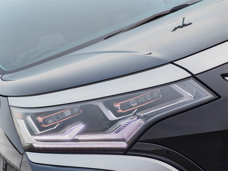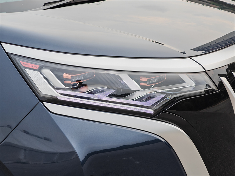 第一次接触Denza D9,你很难用“惊艳”去形容它的外观。它并不是那种会在第一眼就让人停下脚步反复观看的设计,相反,它显得相当克制。车头采用封闭式格栅,配合大量纵向排列的镀铬元素,在视觉上形成一种类似行政级座驾的厚重感。这种设计没有刻意强调未来感,也没有过度追求攻击性,而是选择用比例和细节去建立存在感。LED头灯的造型相当简洁,与车头轮廓融合自然,不张扬,却足够精致。