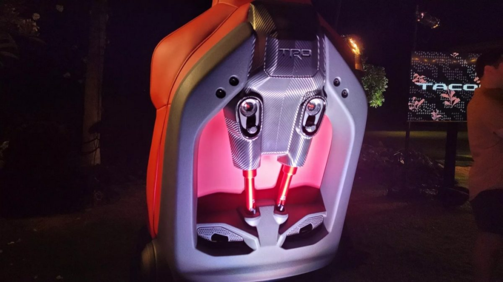 与传统座椅主要依赖泡棉厚度和椅背支撑不同,这套座椅的核心概念来自悬挂系统。丰田工程团队在座椅内部加入了油压与气压协同运作的缓冲结构,使座椅本身具备类似避震器的功能。当车身在越野路况中上下跳动时,这些震动并不会毫无过滤地传递到驾驶者脊椎,而是先被座椅内部结构吸收、延缓,再以更柔和的方式释放出来。