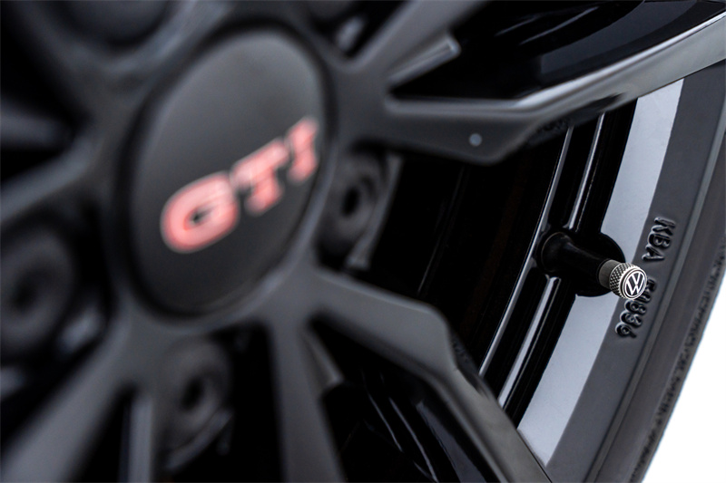 18寸的Pretoria车合金轮圈以高光抛光黑色表面完工,动态轮圈盖上有象征动力的“GTI”车徽,气阀则采用VW Design铝帽。