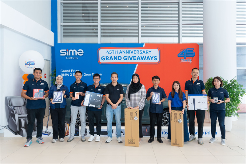 【八打灵再也,2025年10月31日】—— 为庆祝公司成立45周年,森那美汽车(Sime Darby Motors) 隆重宣布“45周年庆大放送(Grand Giveaways)”活动首批幸运得主名单,正式揭开周年庆的序幕。这场面向全马客户的年度庆典活动将持续至2025年12月31日,丰富奖品包括多款限量礼品及终极大奖—— 宝马2系列Gran Coupé 豪华跑车。