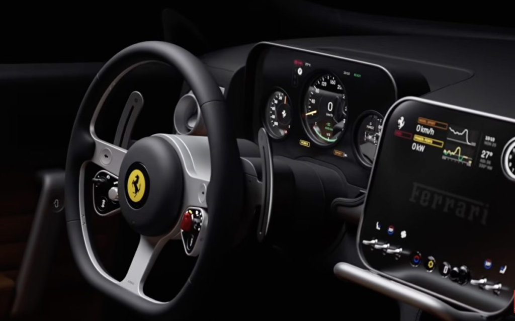 此外,Luce 作为法拉利迈向电动化时代的重要一步,其内饰也象征品牌身份的转型。过去的法拉利强调极致性能与赛道基因,如今在纯电时代,品牌希望展现更成熟、内敛且具有生活质感的一面。少了碳纤维的炫目纹理,多了金属与玻璃的简洁层次,让整个驾驶舱显得更优雅、理性。