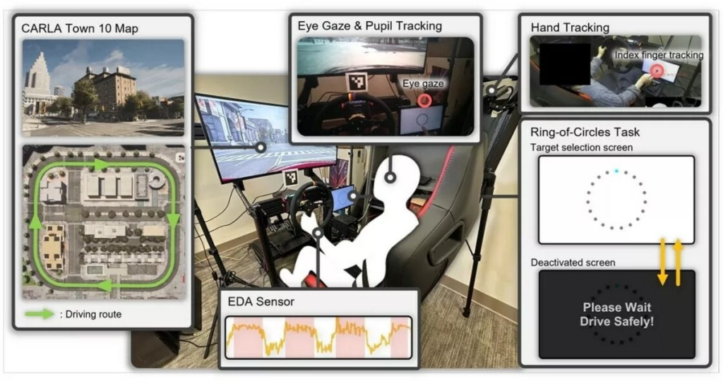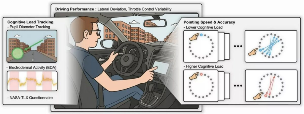 相关研究透过高拟真驾驶模拟系统进行测试,让受试者在行驶过程中同时完成常见的车载操作,例如调节音量、切换音乐、进入系统菜单或设定空调。结果显示,当驾驶者需要在行车中操作触控屏时,不仅操作本身的准确度与反应速度明显下降,车辆的行驶稳定性也同步恶化。车辆更容易偏离车道,方向修正次数明显增加,显示驾驶者的专注力被大量分散。
