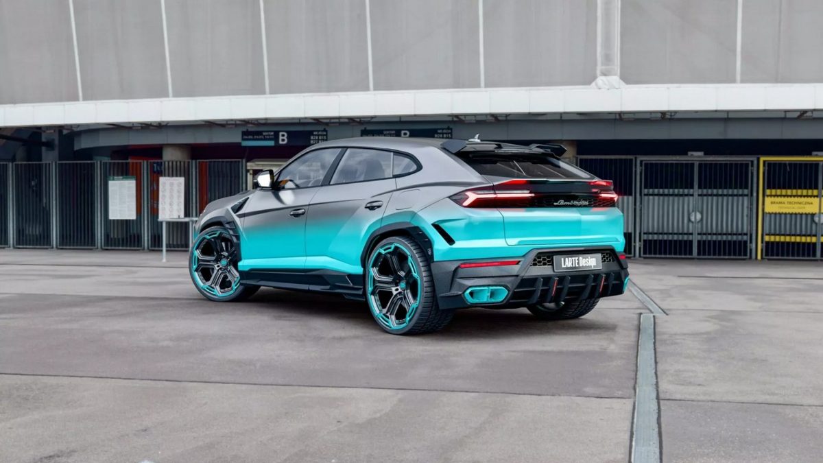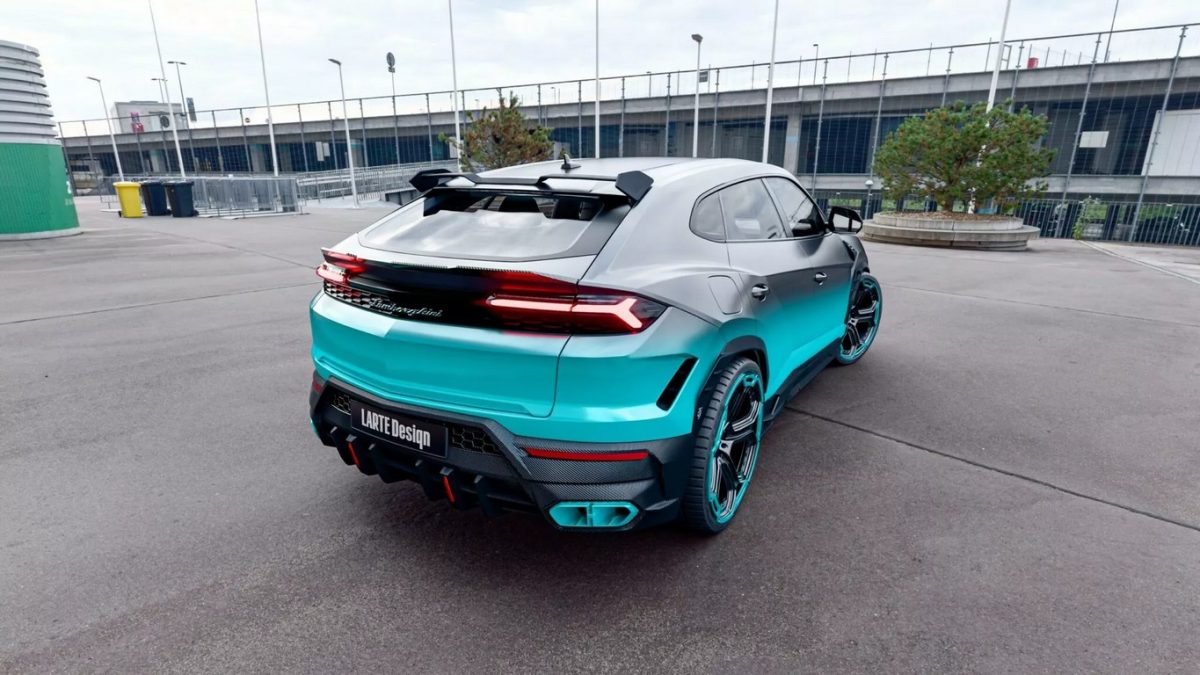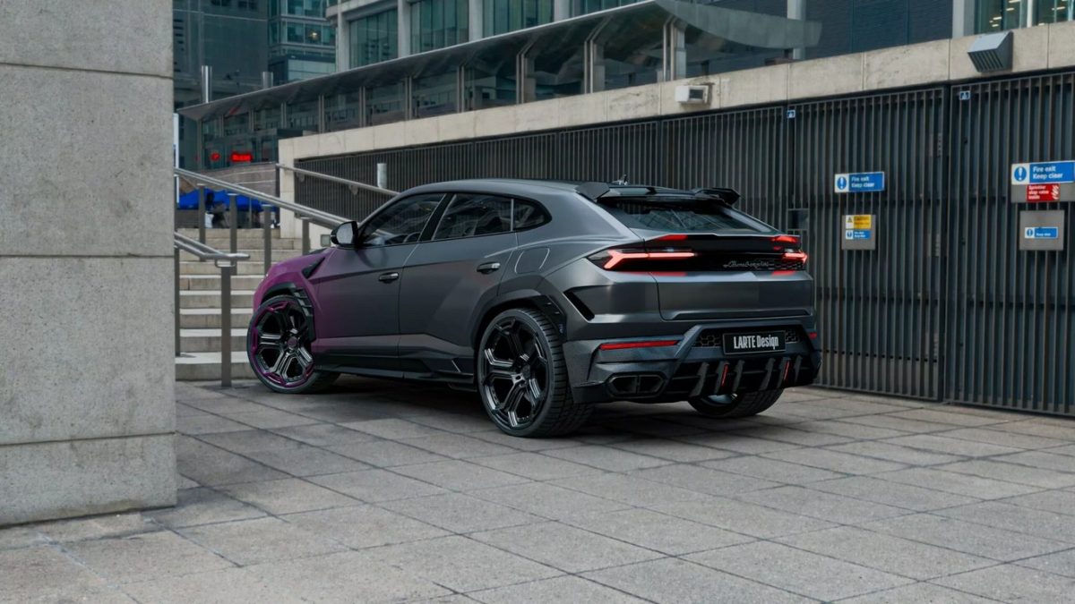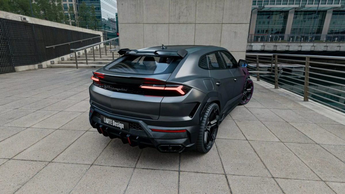 来到车尾,Larte Design 同样没有手软。全新的后下扩散器与可选大型尾翼,让 Urus SE 的尾部更具视觉冲击力,同时也呼应 Lamborghini 一贯强调的空气动力学美学。直立式尾灯在这些碳纤维组件的衬托下显得更加锐利,使车尾层次更加分明,看起来更像一台放大版的超级跑车,而非传统意义上的 SUV。
