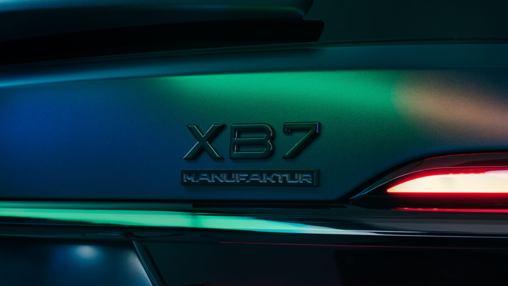 凭借这套动力配置,XB7 Manufaktur从静止加速至约96公里每小时仅需约3.9秒。对于一辆大型三排座豪华SUV来说,这样的加速能力已经接近许多高性能跑车。与此同时,车辆还配备空气悬挂系统,可调高度约8厘米,并结合主动防倾杆以及后轮转向系统,使车辆在舒适性与操控性之间取得平衡。