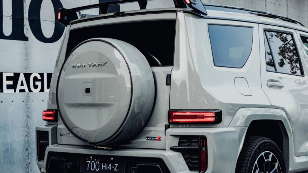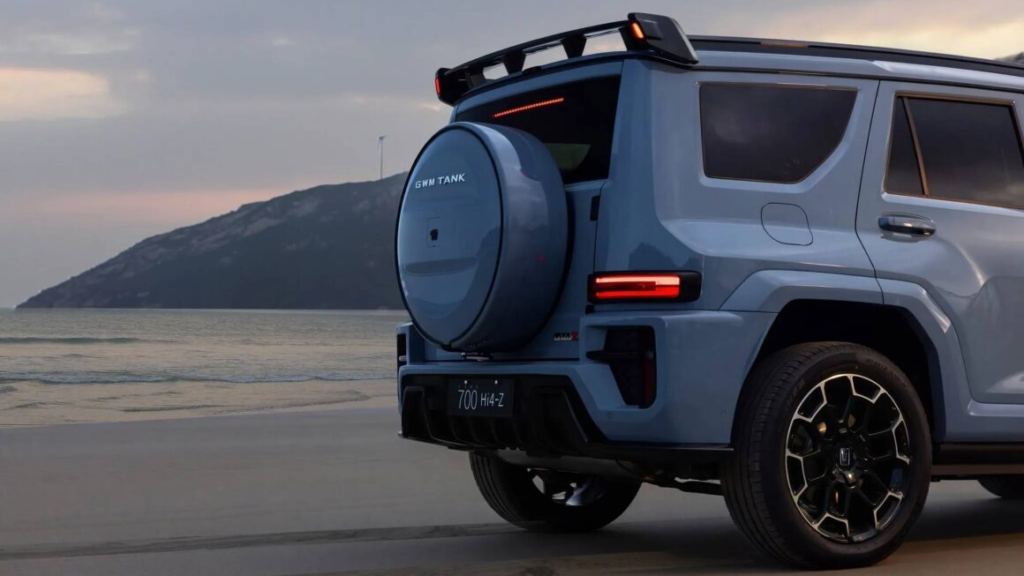 从设计角度来看,Tank 700 Hi4-Z延续了Tank品牌一贯的硬派风格,同时又加入了大量改装化元素,使整车视觉冲击力极强。车身线条方正厚重,配合宽体轮拱、巨大轮胎以及外露式备胎设计,让人第一眼就联想到经典越野车。不过,它又不像传统越野车那样“朴素”,反而更接近一种改装展车的风格。很多人会将它与Mercedes-Benz G-Class进行对比,但同时它又带有一点Suzuki Jimny那种紧凑、玩乐化的味道。整体来说,这是一种刻意强化“存在感”的设计语言,目的很明确,就是要让人一眼记住。