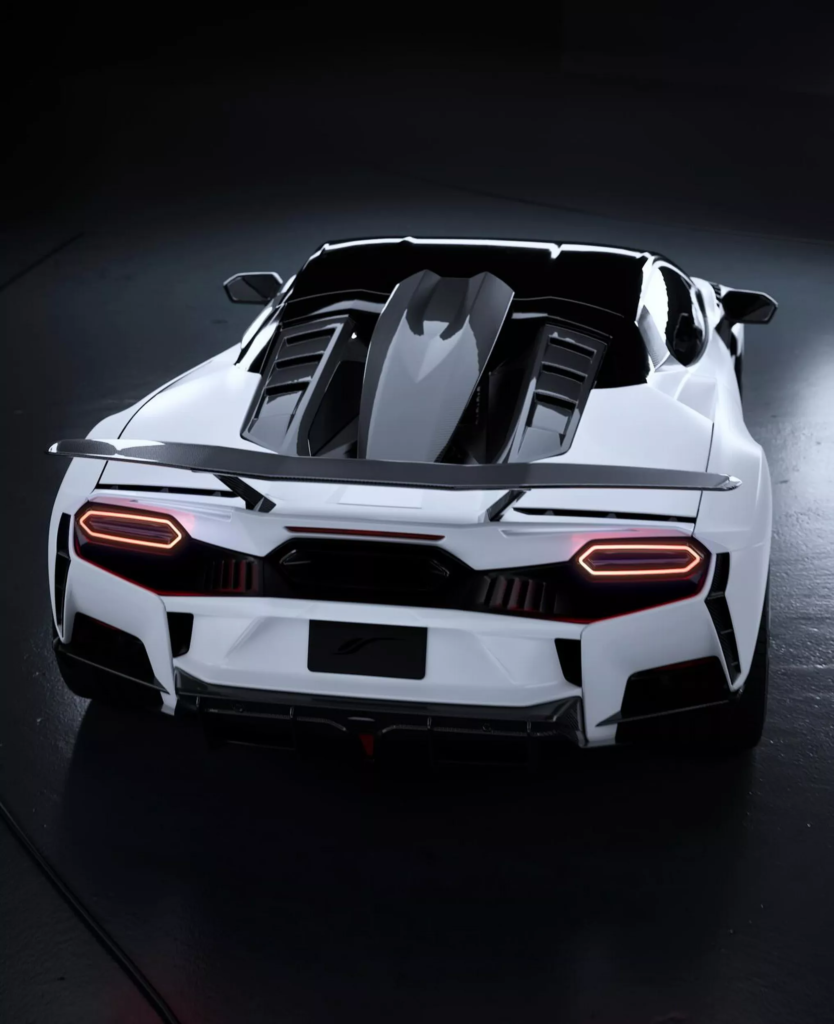 从第一眼看去,这辆 Temerario 就毫不掩饰它的攻击性。1016 Industries 为其量身定制的宽体套件,让整车视觉宽度大幅增加,前后轮拱明显外扩,车身比例从原厂的流线锋利,转变为更接近赛道机器的低伏姿态。这样的设计并非单纯为了“更凶”,而是为了容纳更宽的轮胎组合,并在高速行驶时提供更高的横向抓地力与稳定性。对真正懂改装的人来说,这种“宽体不是装饰,而是结构逻辑”的处理方式,正是 1016 的核心价值。