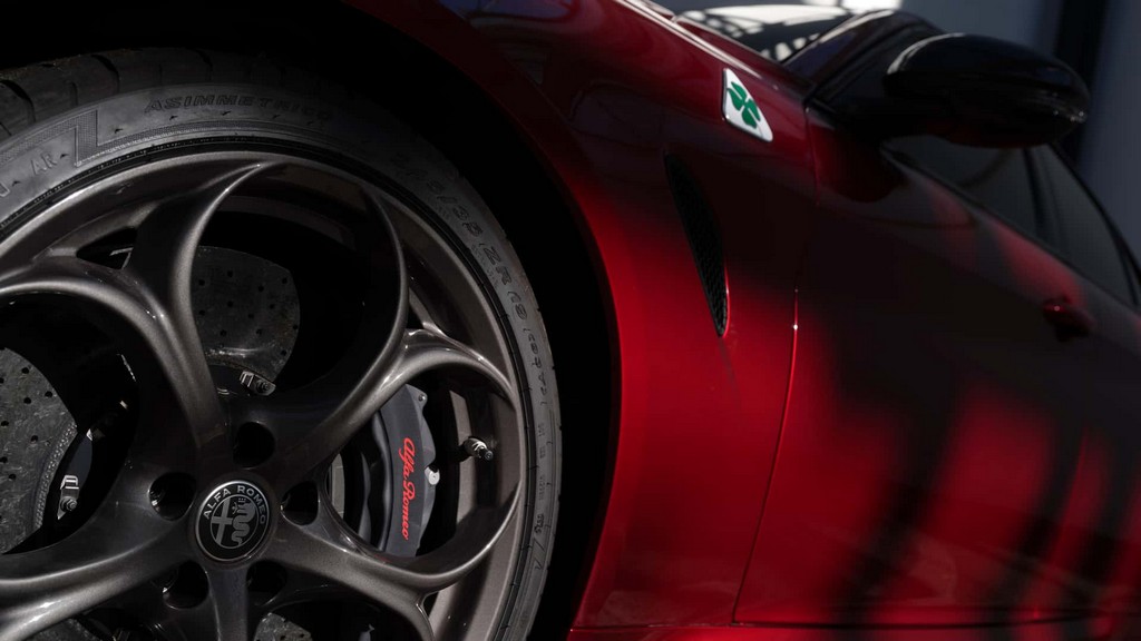 Collezione 展现出与一般版本截然不同的风格。它采用与品牌稀有超跑 Alfa Romeo 33 Stradale 相近的深红车漆,色调浓郁、层次饱满,在阳光下有特殊金属感光泽。车身细节如碳纤维车顶、空气力学组件、轻量化徽章及专属饰条,都让车辆呈现更鲜明的性能视觉。大量使用碳纤元素不仅是为了造型,也为轻量化作出贡献,让车身动态表现更为敏捷。