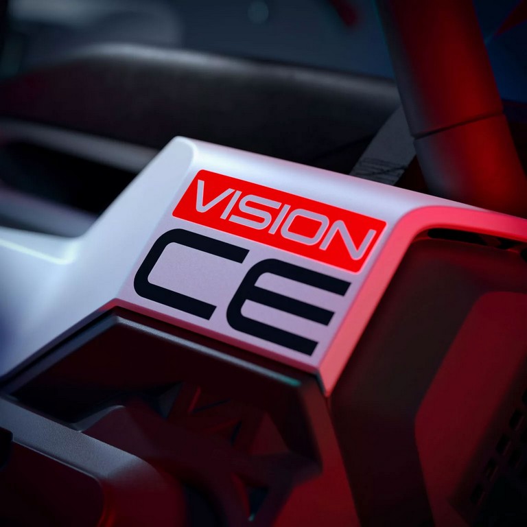从外观上看,Vision CE 拥有极简却极具未来感的造型。车体线条纤细流畅,前端采用封闭式设计,没有传统散热孔与引擎部件,整体更像一件流动的金属艺术品。车身结构由铝合金与轻量碳纤维材料打造,中央的镂空安全笼不仅强化防护,也让整车视觉上更轻盈。BMW 工程团队更在其中融入了一套“主动安全带系统”,可在特定情况下替代传统头盔保护,为骑士提供另一种安全思维。这项概念虽然尚未被各国法规接受,但无疑在挑战传统摩托安全规范。