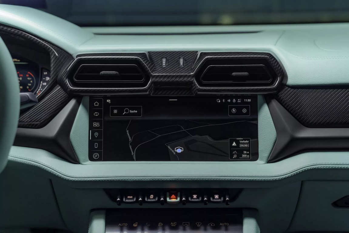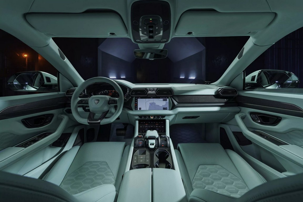 进入车内,Brabus 的定制功力更是展露无遗。座舱几乎找不到原厂 Urus 的影子,取而代之的是 Brabus Masterpiece 级别内饰工艺。大量高等级真皮、Alcantara 麂皮与碳纤维饰板覆盖仪表台、门板与中控区域,缝线、压纹和颜色搭配均根据 Superblack 或 Mint 的主题量身打造。对Brabus而言,内饰不仅是豪华配置,更是一种身份象征。