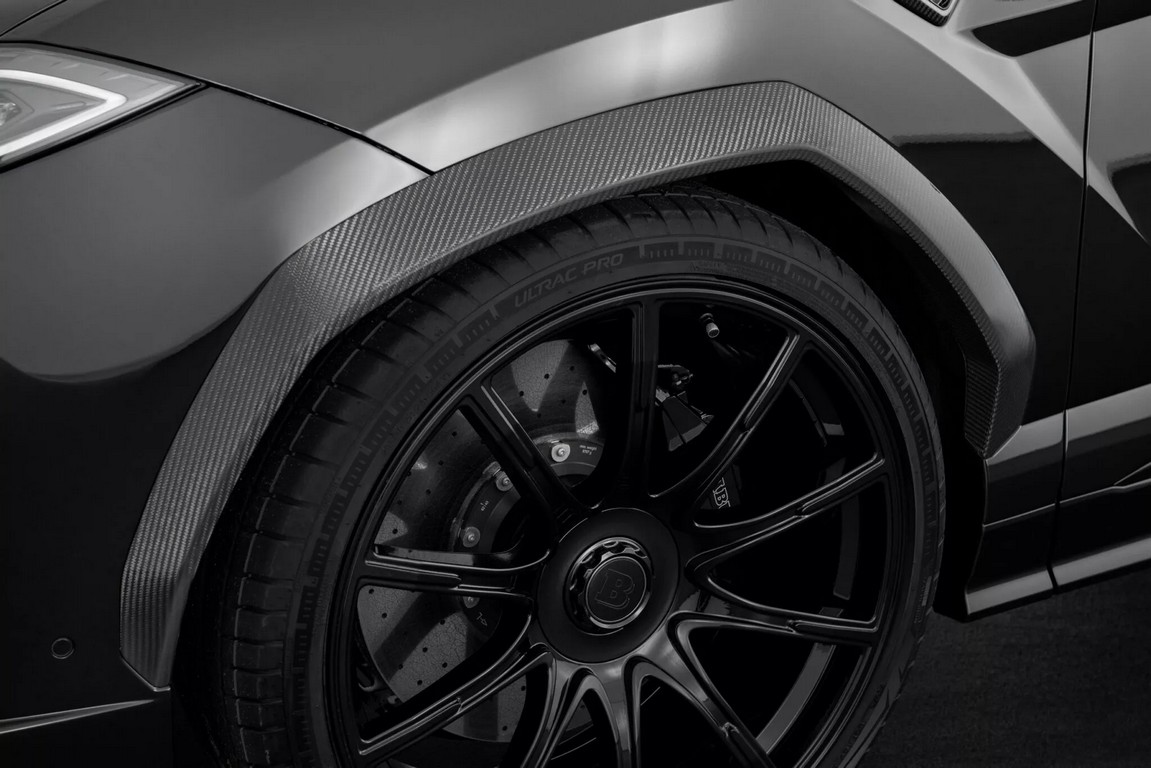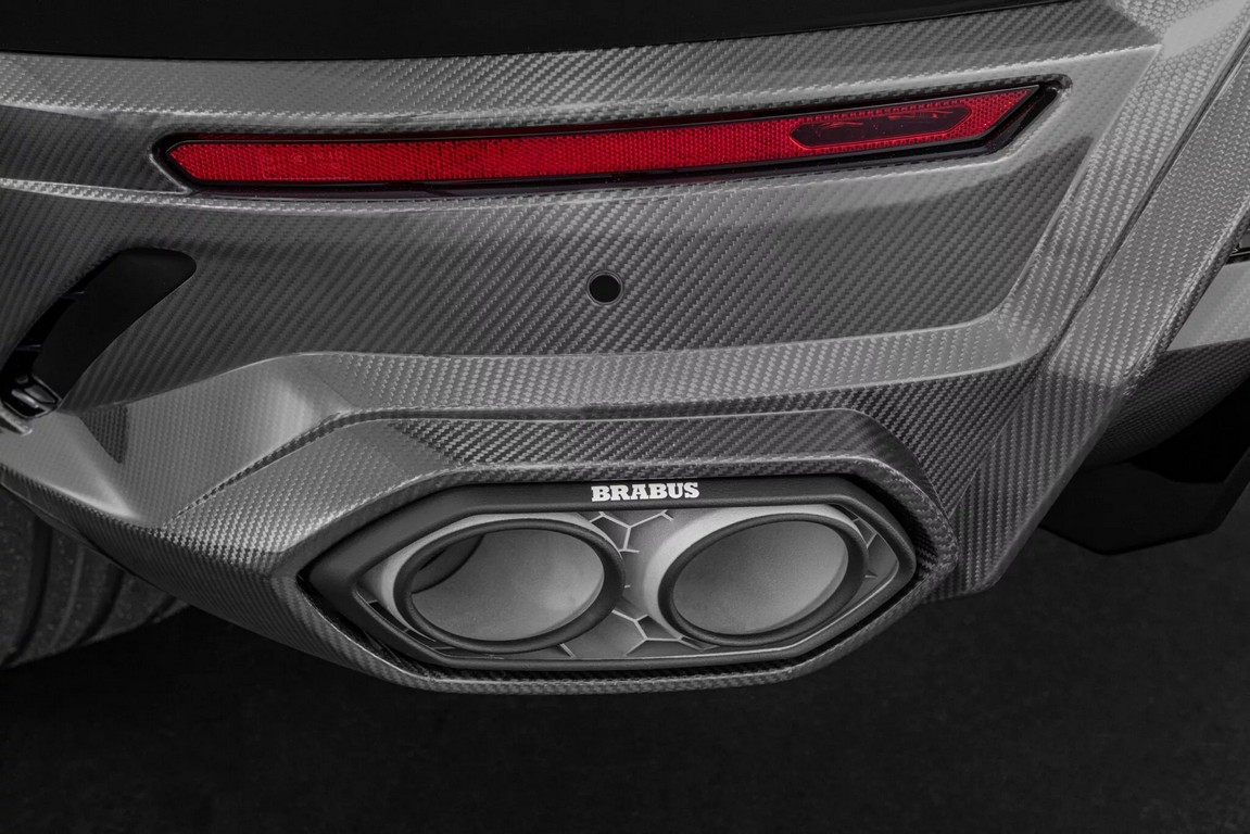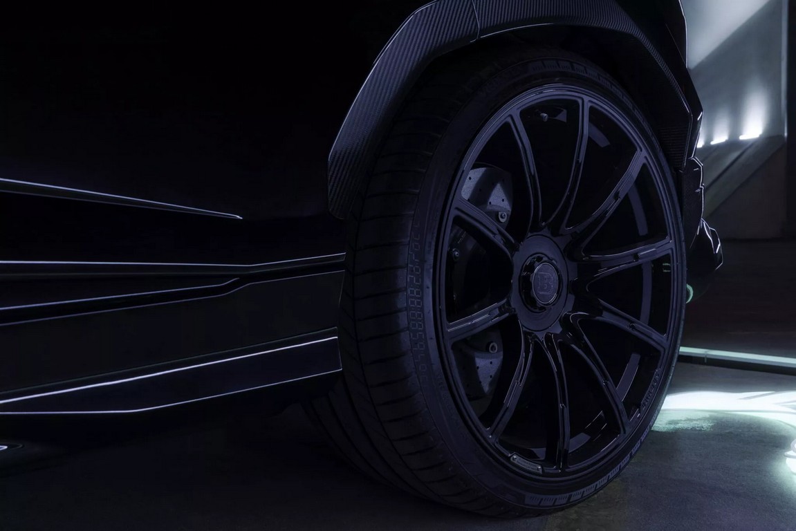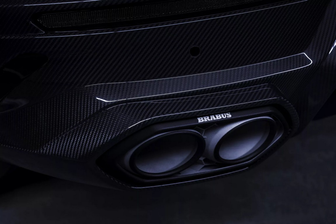 在外观层面,Brabus 900 Superblack 贯彻了品牌一贯的“全黑哲学”。车身采用深黑色涂装,搭配大量裸露碳纤维部件,包括前唇、进气装饰、侧裙、加宽轮拱以及尾部扩散器。黑色并不只是颜色选择,更是一种态度:低调、冷峻,却又充满压迫感。即便静止不动,这辆车也散发出强烈的力量气场。
