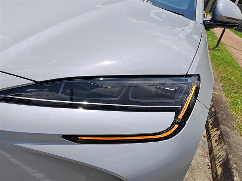 车头姿态低伏,封闭式前脸搭配锐利的灯组线条,让整台车在视觉上显得更宽、更稳。前包围的造型并非单纯装饰,而是为高速行驶与气流管理服务,这一点在高速巡航时能明显感受到车头的贴地感。