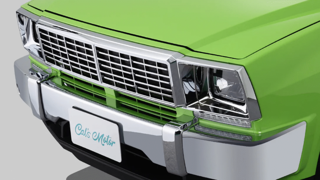 前脸是这台车的最大亮点。Cal’s Motors 以厚实的直立式格栅取代原厂的运动化设计,中央嵌入镀铬横条与品牌字样,散发浓浓美式风情。圆形复古头灯搭配镀铬包圈,让人瞬间联想到上世纪的经典 SUV,如 Jeep Wagoneer 或 Ford Bronco 的设计语言。保险杠下方加入金属防撞饰板,既实用又为车头增添冒险气息。车侧线条被重新修饰,腰线更平直,窗框加上银色饰条,整体造型更显优雅怀旧。