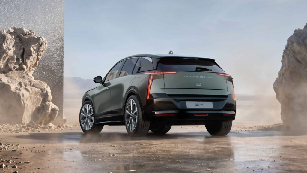 设计一直是DS品牌的重要特色,这款N°7也不例外。车头采用具有辨识度的发光格栅设计,并搭配独特的V形日行灯,使整车在夜间也具有极高辨识度。车身线条则更趋流线化,不仅视觉上更优雅,同时也通过空气动力学优化,将风阻系数降低至约0.26Cd,有助于提升续航与行驶稳定性。