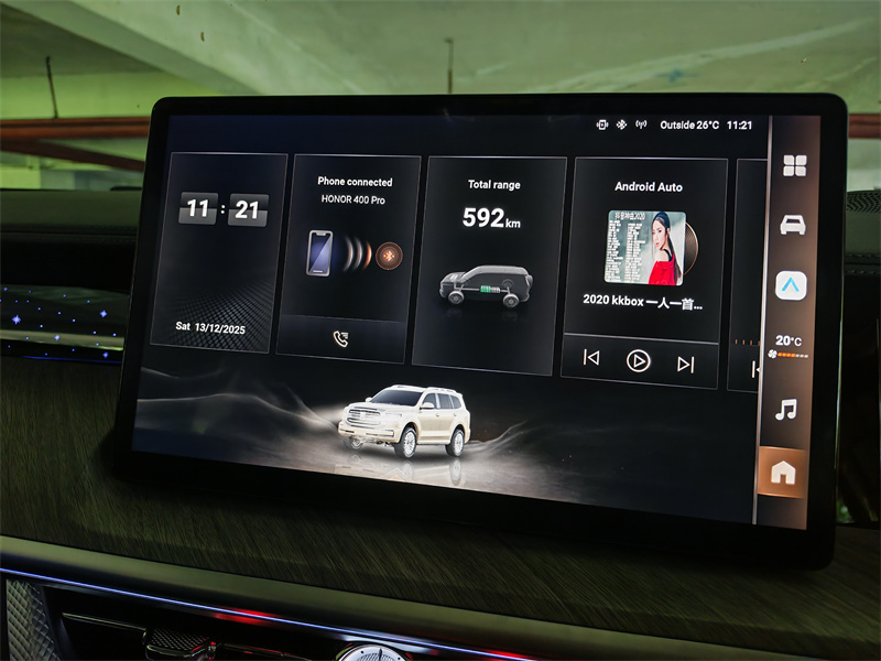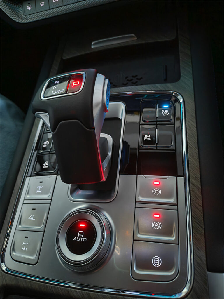 但真正让我在这台车上感到兴奋的,还是它把豪华与越野结合得如此自然。你可以在周末把车里的冷藏扶手箱准备好饮料、打开全景天窗在山谷间呼吸新鲜空气,然后切换到越野模式,放低胎压、解锁四驱、启用低速档,缓缓地开始爬坡。当车轮遇到大石或沟坎时,差速锁与低速齿比配合电机的即时扭矩会悄无声息地把你带过障碍,而车内的座椅按摩与车厢音响能让家人在这段颠簸路程中保持放松,孩子在后排仍然可以玩平板或打盹,长辈也不至于被颠得措手不及。