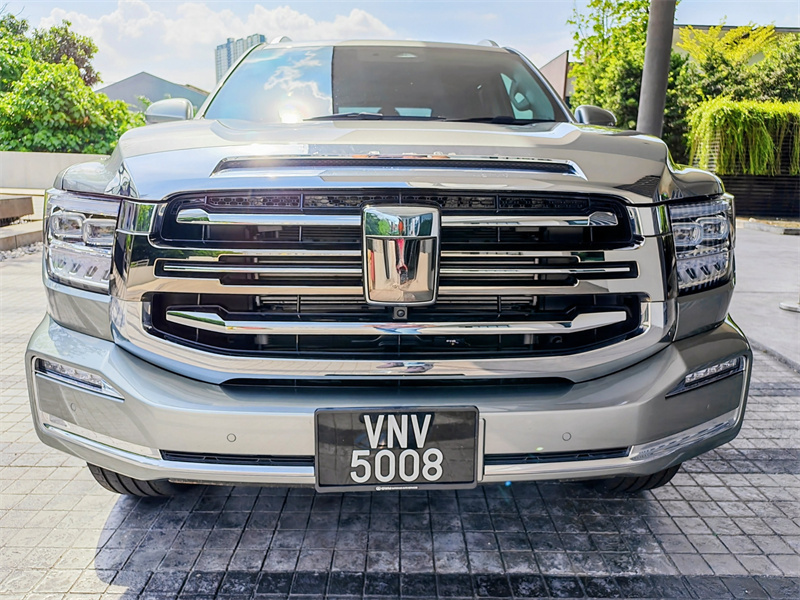 故事从外观开始讲起。Tank 500 HEV 的外形有一种老派的威严感:方正的车身、直立的前脸、大面积的格栅和厚实的护板,视觉上让人觉得这是一台“能扛事儿”的车。但细看又不会粗糙到只剩攻击性,车灯、镀铬边框、轮圈样式都带着现代质感,停在写字楼或五星酒店门口既有体面,也不显突兀。它不会为了越野而丢掉城市风度,反而把越野元素理性地融入外观设计,让你在城市里开也不掉面子,在乡间走也不失底气。