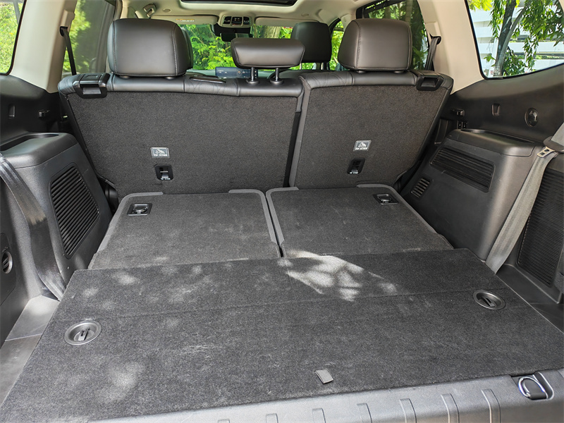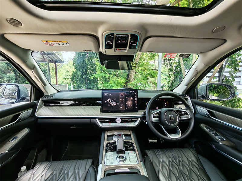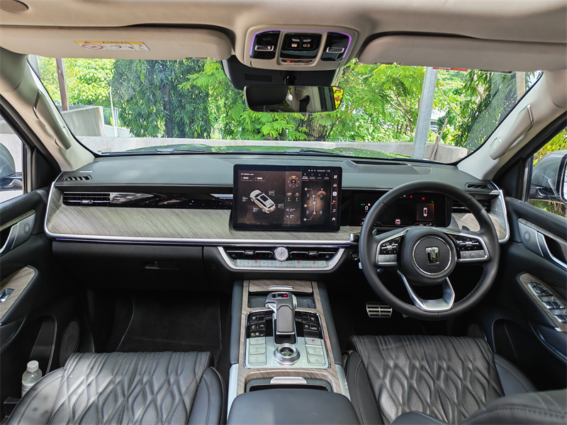 进入车内,Tank 500 HEV 的目标立刻暴露:这是台把“人”放在第一位的车。Nappa 真皮包覆的座椅触感很好,前排座椅支持通风与按摩功能,凉爽与放松在马来西亚这种气候和长途驾驶场景下尤为重要。你会发现它的座椅不是只追求一两次“舒服”,而是设计成适合每日长时间驾驶的那种舒适——填充恰到好处,靠背支撑和侧翼包裹配合得体,让人在蜿蜒山路或长途巡航时都不会过早疲劳。第二排的靠背角度和腿部空间都经过精心考虑,长时间乘坐不会觉得憋屈;第三排则采用电动调节,平时放倒用于行李,必要时也能方便地变成真实可用的座位。这种“每一排都可用”的设计逻辑,恰恰符合家庭用车的实际场景。