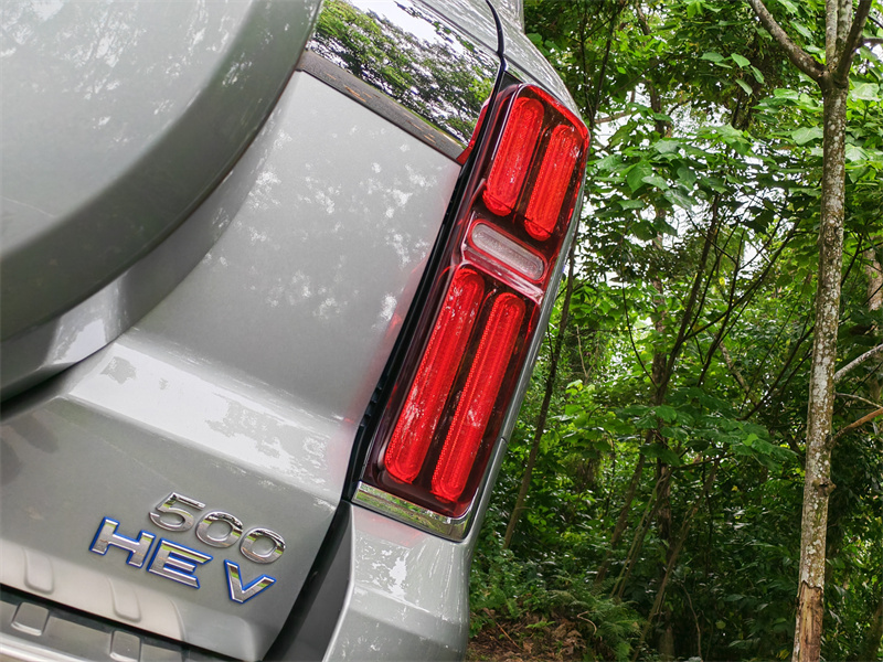 除此之外,Tank 500 HEV 还配备了低速四驱齿比(4L)低速档箱,在爬坡、极慢速通过陡坡或大角度岩石路时能把扭矩放大到极致,让车子能像爬山虎一样一步一步前进,而不是靠高速齿比去拼扭矩。低速四驱与电机即时扭矩结合在一起,尤其在坡地低速爬升或脱困时表现卓越,电机的细腻输出能避免燃油机那种“顿挫或熄火”的尴尬,驾驶者可以非常平稳地控制节奏。