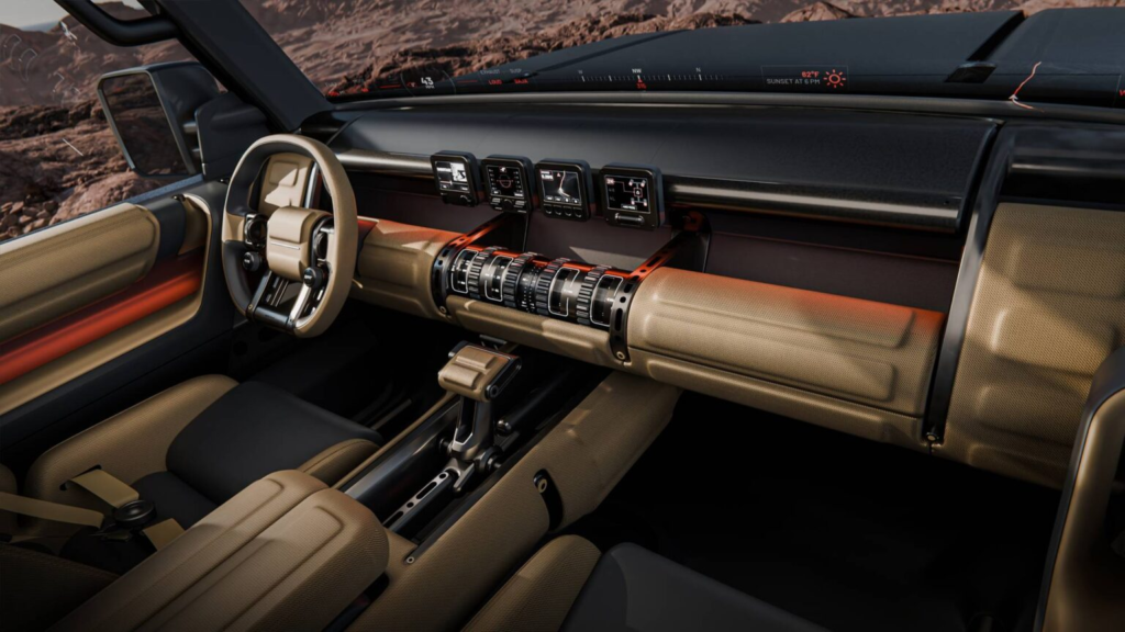 有别于当前大量采用触控屏的趋势,这款车在内装设计上选择回归实用主义。车内保留大量实体按键与旋钮,使驾驶者在颠簸环境中也能精准操作。这种设计对于越野场景来说更加直觉与安全。