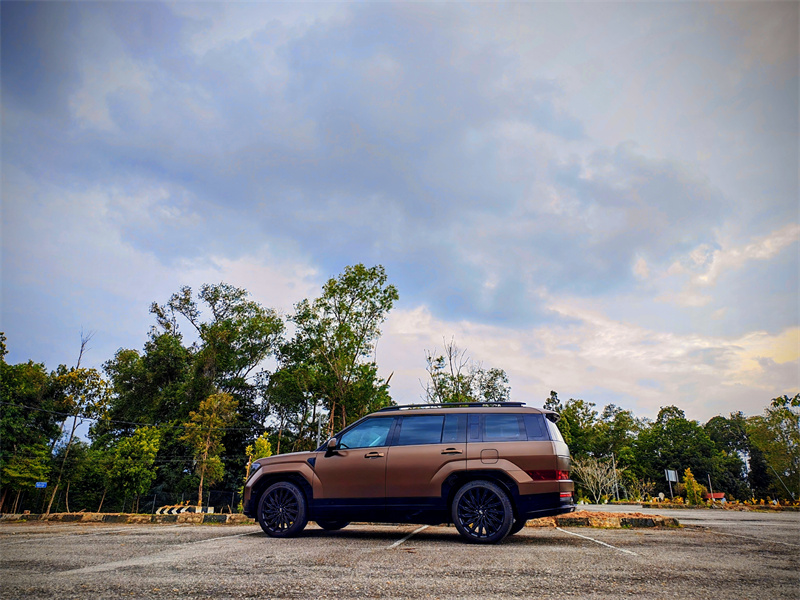 整体造型方正、线条清晰,没有过度追求所谓“运动感”,但却有一种很明确的结构感。这种设计对我来说并不陌生,日本 SUV 一直强调“形体清晰”,而 Santa Fe 则在此基础上加入了更多现代工业美学。