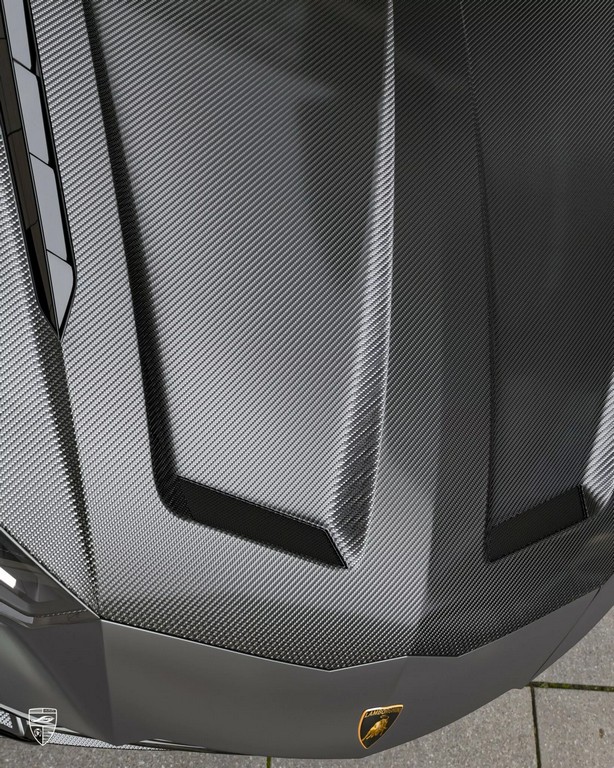 Larte Largenda 的设计理念在于「不只是更快,而是更精致」。整套套件共包含18个主要部件,全部以高强度碳纤维与玄武岩复合材料手工打造。工程团队重新设计了前保险杠、引擎盖、前唇、侧裙、后扩散器与尾翼,并对空气动力学进行优化。整辆车外观更加低趴、宽体且具侵略性,但细节依然保留了意式的优雅比例。特别是那具裸碳引擎盖与前扰流下唇,让整辆 Urus 看起来像随时准备起飞的猛兽。