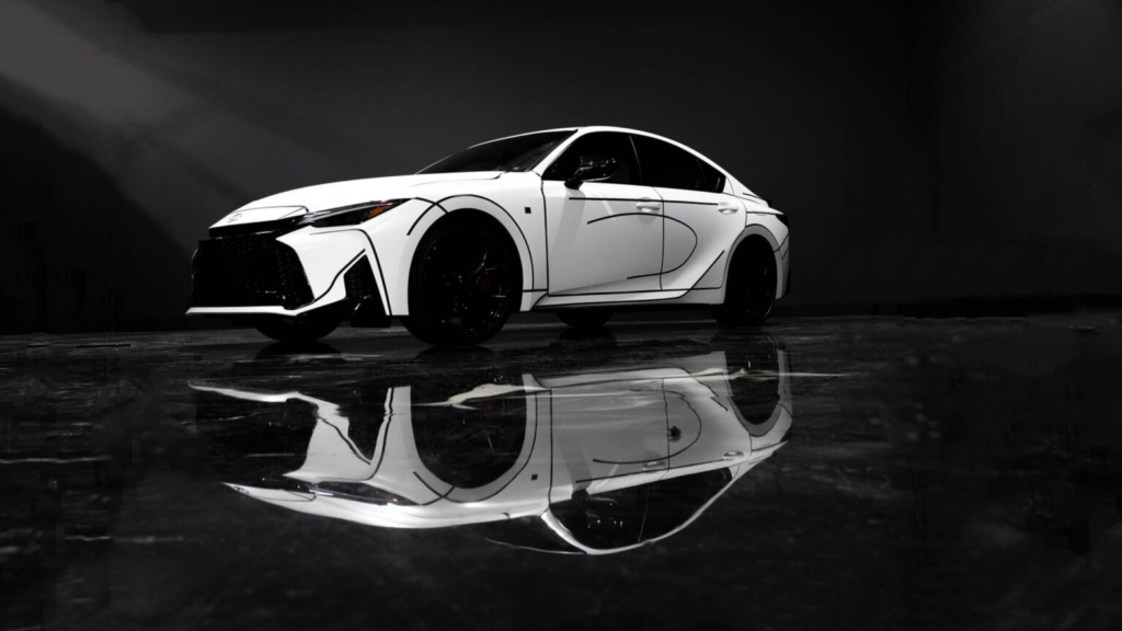 这些线条并非随意添加,而是精准贴合车身原有设计。艺术家选择顺着车体曲线进行描绘,让线条成为设计的一部分,而不是单纯的装饰。这种处理方式既保留了 IS 350 原本的动感比例,也赋予车辆新的艺术层次,使整体视觉既熟悉又新颖。