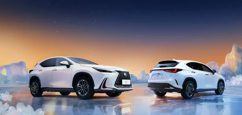 从外观来看,NX aurara Edition 最大的特色在于专属车色与粉色妆点。Lexus 为这款车准备了两种特别涂装——“雪樱”与“月海”。两种颜色都以白色为基底,但在车身细节部分加入大量粉色元素点缀,包括轮圈、局部饰条以及车尾的 “aurara edition” 专属铭牌。整体效果既不会过于夸张到难以驾驭,又能明显表达与一般 NX 车系的差异。对于喜欢温柔、干净、带点甜美感视觉风格的车主来说,这样的配色组合非常讨喜。