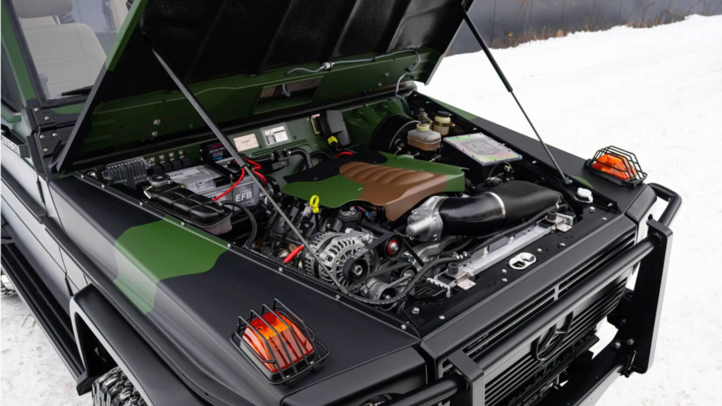此次改装的核心,在于将传统军规G车型进行全面升级。原始版本的 G-Class 多用于军用或功能性场景,强调耐用性与可靠性,但在动力与舒适性方面相对保守。改装厂在保留经典结构与设计语言的同时,引入现代化动力与底盘技术,使整车性能实现跨世代提升。